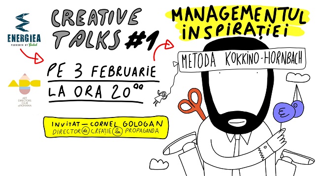 Prima ediție are loc miercuri, 3 februarie și îl are ca invitat pe Cornel Gologan (Director de Creație la Propaganda), care va vorbi despre Managementul Inspiraţiei, metoda Kokkino-Horbach. Accesul este liber.