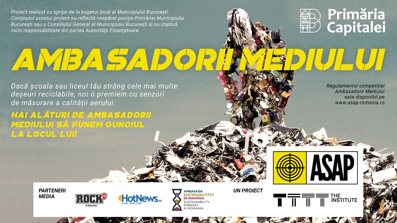 Elevii din București au 3 luni la dispoziție pentru a colecta separat deșeuri reciclabile de plastic, hârtie și carton la punctele instalate în școlile lor, dacă se înscriu în concursul „Ambasadorii Mediului” organizat de ASAP (Armata Selectării Atente a Plasticului) și Primăria Municipiului București. Cei care reușesc să strângă cea mai mare cantitate vor primi titlul de Ambasadori ai Mediului și vor câștiga un premiu important pentru școala lor: 3 senzori de măsurat calitatea aerului, încurajând astfel acordarea atenției asupra factorilor de mediu înconjurător și comportamentul responsabil și sustenabil în ceea ce privește mediul.