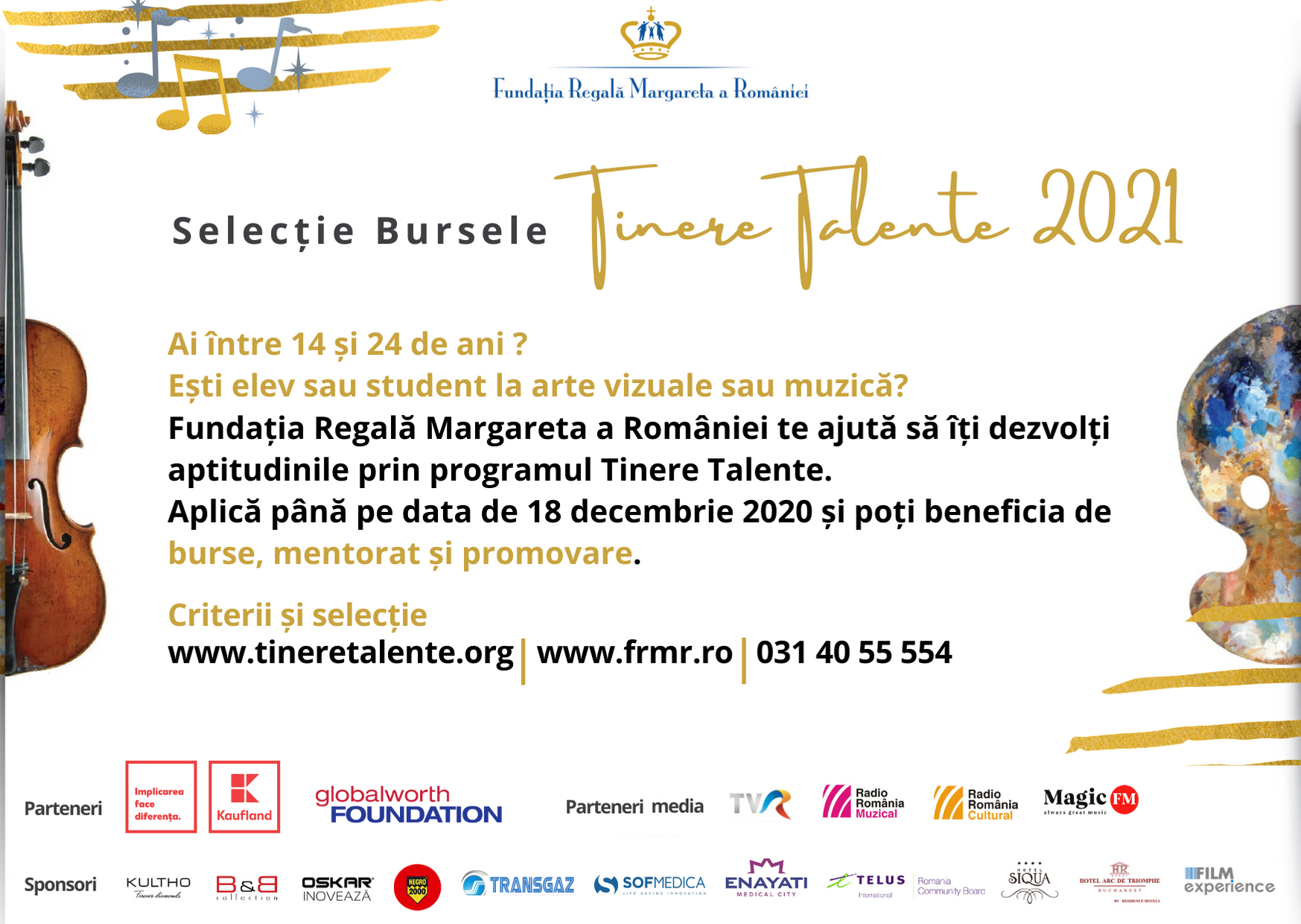 Fundația Regală Margareta a României vine în sprijinul tinerilor talentați din toată țara, care pot aplica până pe 18 decembrie pentru a deveni bursieri ai programului Tinere Talente, în cea de-a 14 ediție a acestui proiect.