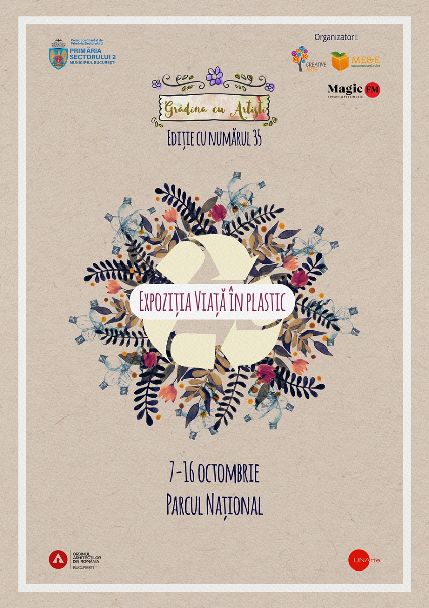 Pe 7 octombrie, în cadrul mini-festivalului urban Grădina cu Artiști, vor fi anunțați câștigătorii concursului Viață în plastic – reciclează și transformă în artă, la care au participat artiști profesioniști din toată țara cu propuneri de lucrări sau instalații outdoor realizate din materiale reciclate din plastic (PET-uri, recipiente din plastic, dopuri, etc). Câștigătorii celor 4 premii cu valoarea totală de 3.000 euro, contravaloarea în lei vor fi anunțați de juriul competiției vineri, pe 7 octombrie, de la ora 18:00, în cadrul ceremoniei de deschiderea a evenimentului iar ulterior expoziția temporară cu lucrările finaliștilor va putea fi văzută între 7 și 16 octombrie, în Parcul Național din București.