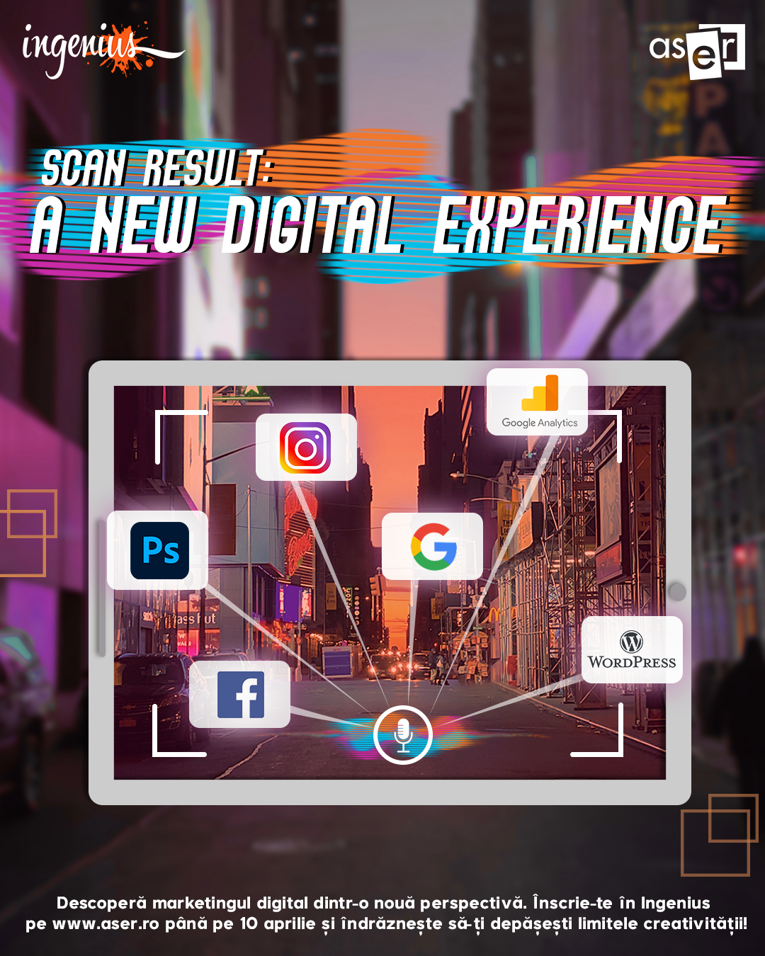 Anul acesta, ASER revine cu cea de-a opta ediție a proiectului Ingenius, în mediul online. În perioada 14-30 aprilie, fă primii tăi pași în lumea Digital Marketingului și învață cum să construiești de la zero o campanie de promovare online.