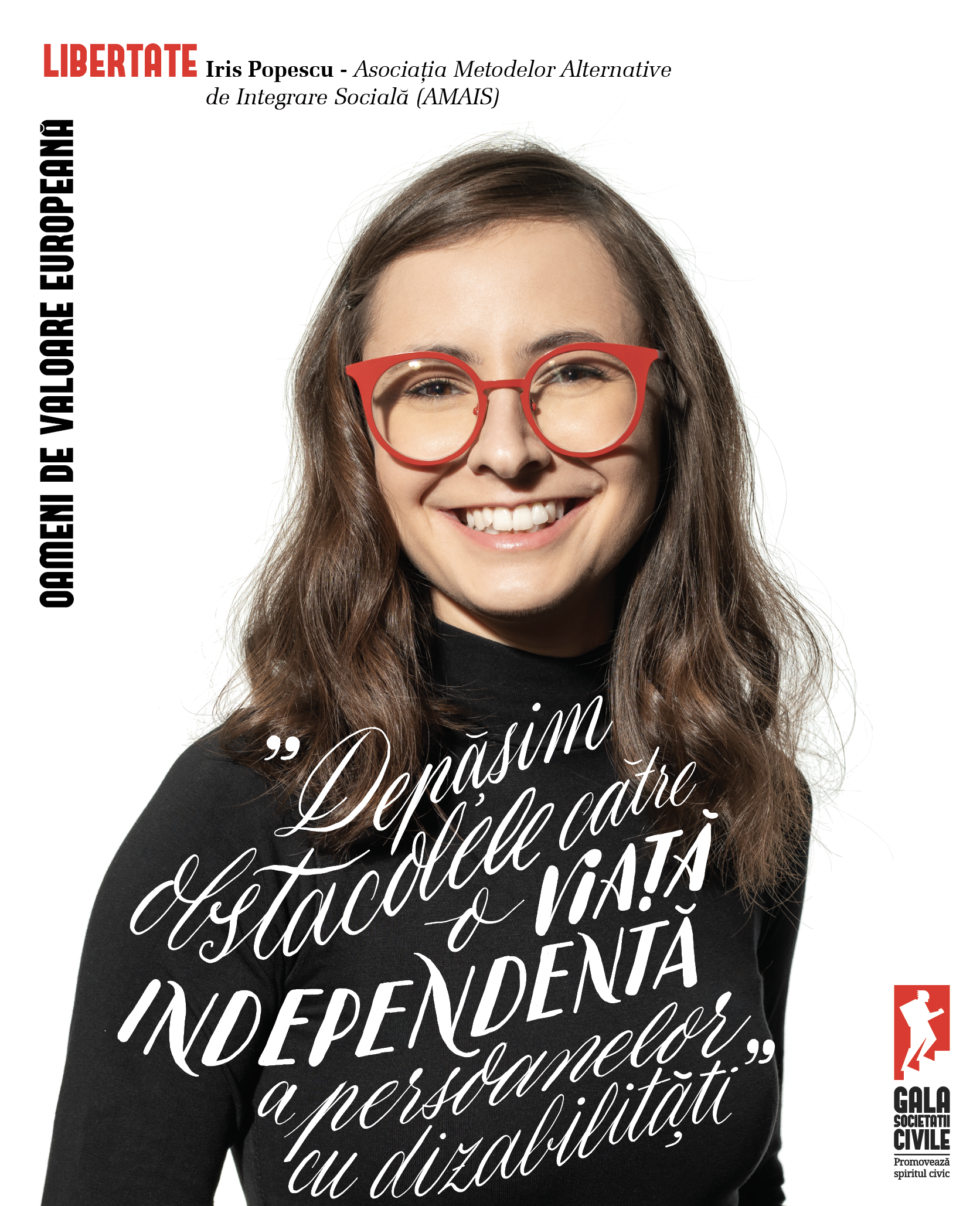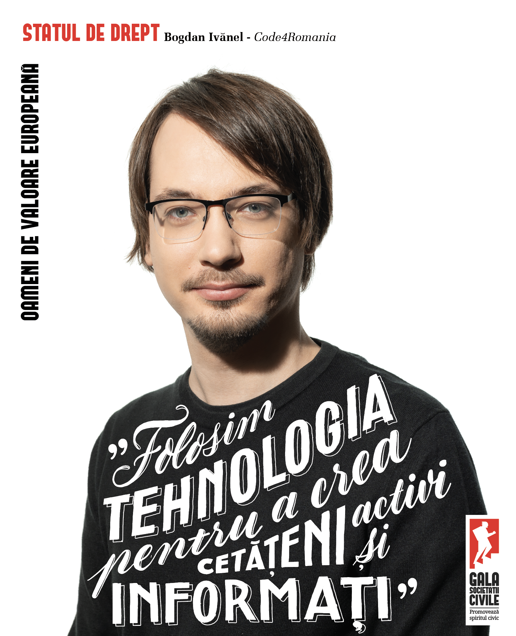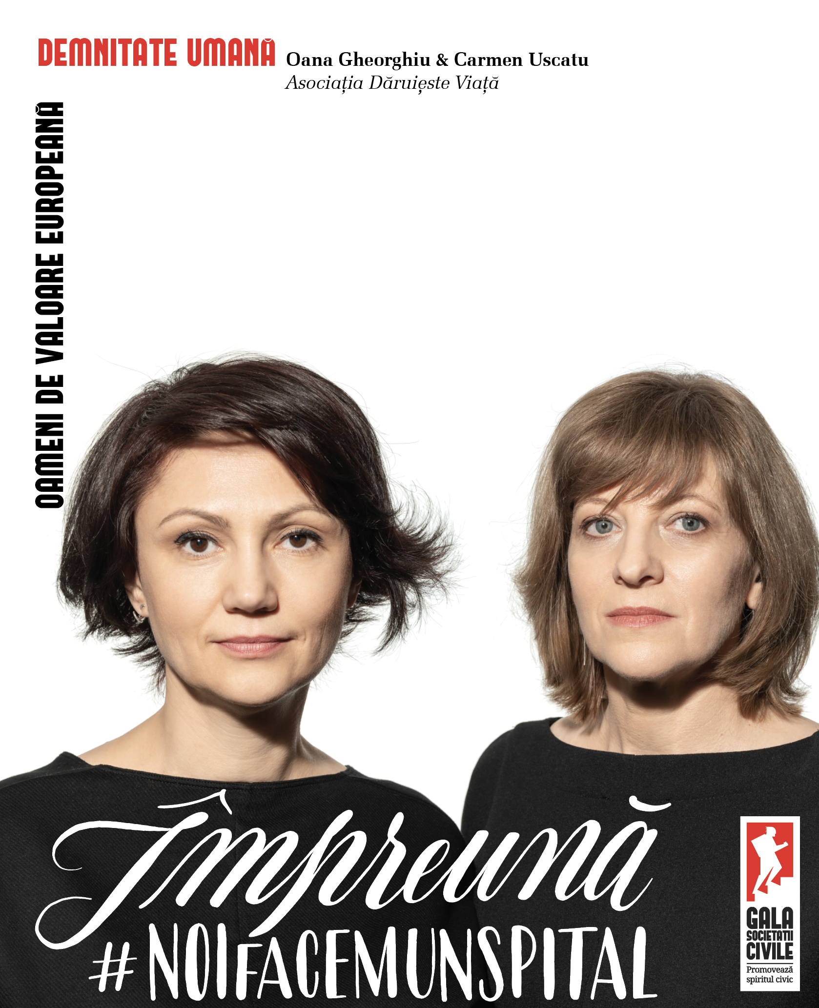 Campania de comunicare a celei de-a XVII-a ediţii Gala Societății Civile, „Oameni de Valoare Europeană”, se desfășoară în perioada 16 mai – 26 iunie 2019. Campania promovează cele șase valori europene - demnitatea umană, libertatea, democrația, egalitatea, statul de drept și drepturile omului – prin intermediul unor oameni, proiecte, organizații și grupuri de inițiativă, câștigătoare la ediția anterioară a Galei Societății Civile, care materializează și promovează aceste valori în România: Carmen USCATU & Oana GHEORGHIU – Fondatoare Asociația Dăruiește Viață (Demnitate umană), Iris POPESCU - Președinte Asociația Metodelor Alternative de Integrare Socială (Libertate), Mihai MATEI - Coordonator Fondul pentru Democrație și Membru fondator Geeks for Democracy (Democrație), Alina ȚIPLEA - Președinte Merci Charity Boutique (Egalitate), Bogdan IVĂNEL - Managing Director Code4Romania (Statul de drept), Patrick OURIAGHLI - Director General Ateliere fără Frontiere (Drepturile omului).