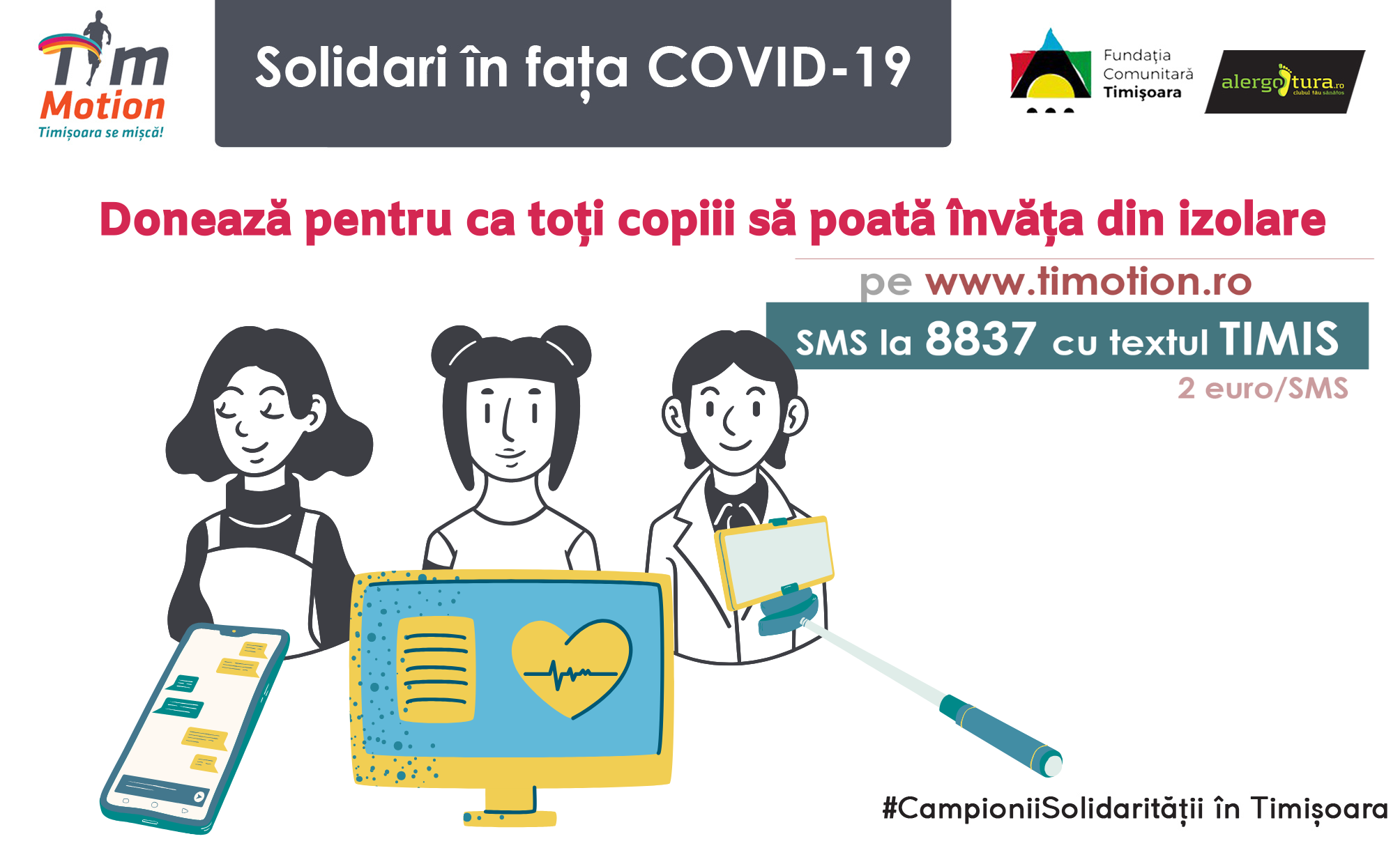3. Pentru că școlile nu se vor redeschide în viitorul apropiat, este extrem de important în această perioadă să nu îi neglijăm pe cei care au nevoie de noi pentru a-și continua studiile. Fundația Comunitară Timișoara propune o soluție la această problemă: strângerea de donaţii sub forma unor aparaturi IT funcționale (tablete, laptopuri etc.). Pentru cei care își doresc să se implice, datele de contact sunt: fundatiacomunitaratm@gmail.com sau numărul de telefon 0770101707. Mai multe detalii aici.