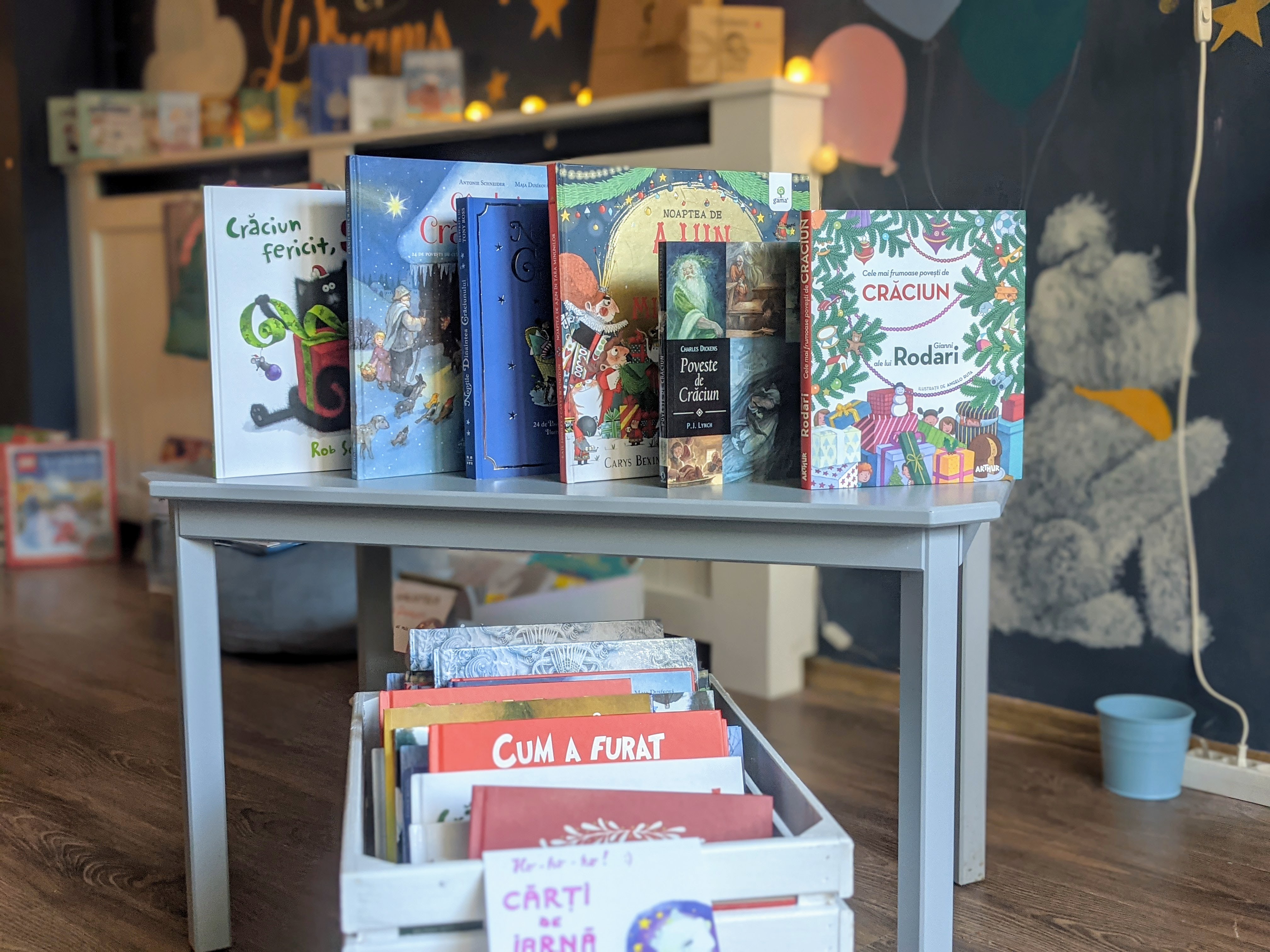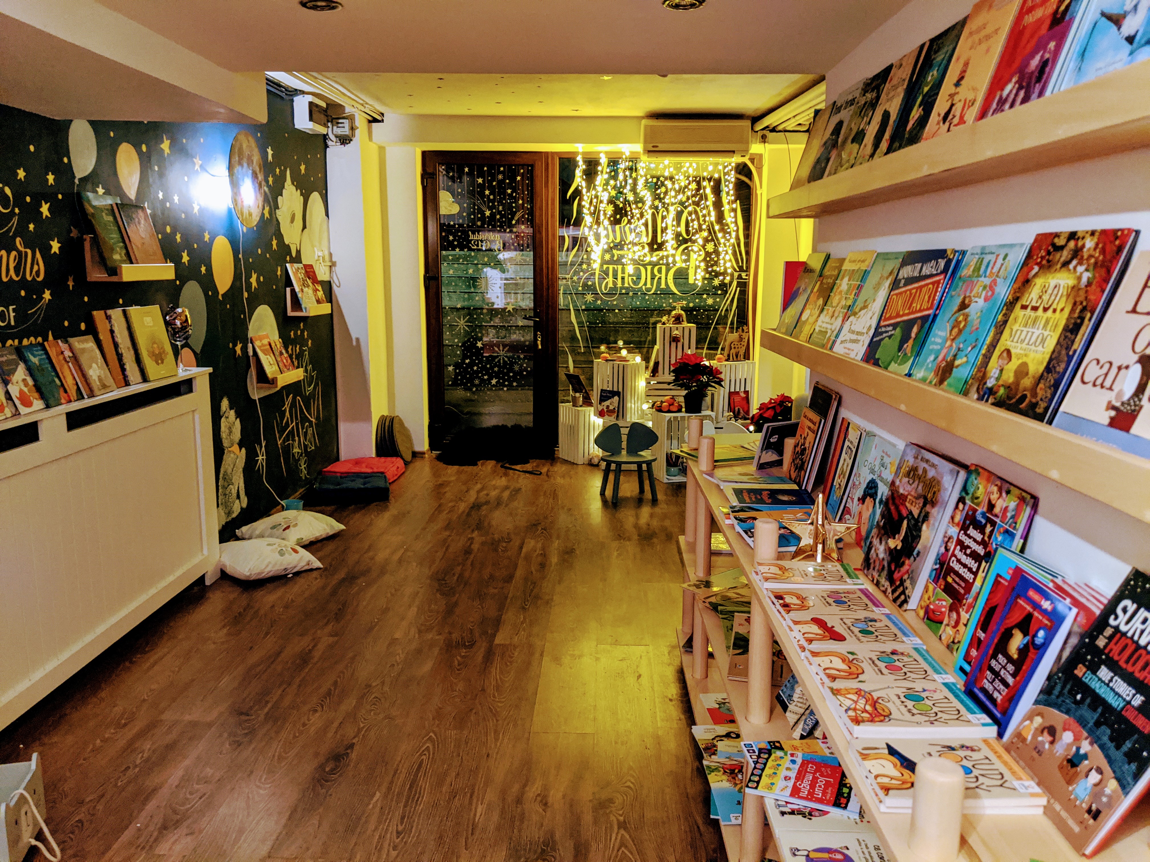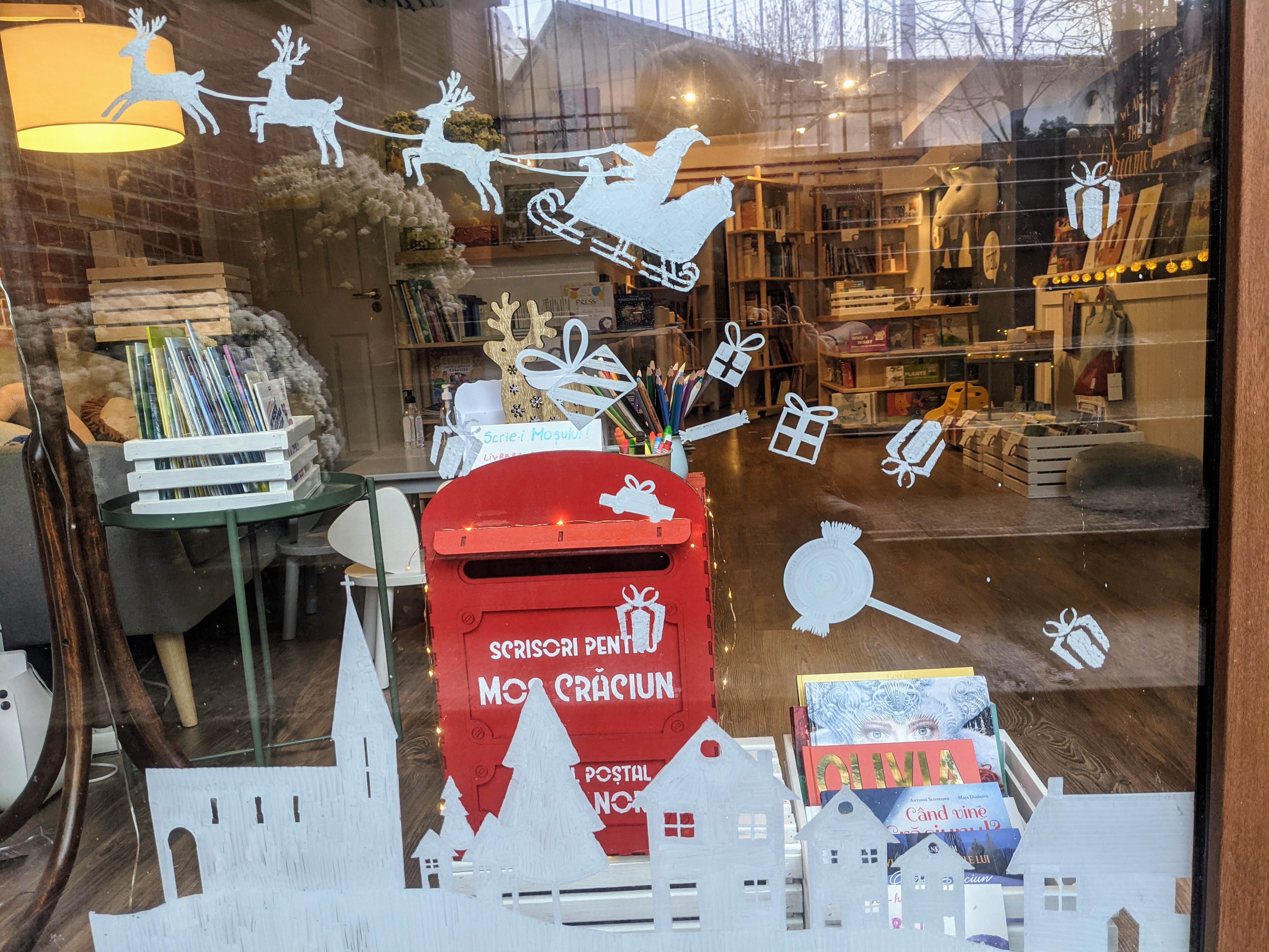 Ana: Ah, în Crăciunul ideal am fi întins salteluța de povești, cum făceam înainte de pandemie, am fi făcut storytimes magice în fiecare zi, am fi avut turtă dulce coaptă acasă pentru toți copiii și librăria ar fi fost mereu plină. Dar nici Crăciunul real nu e atât de rău: avem storytimes online, în librărie sunt mai mereu cititori (deși avem o limită de vizitatori, așa că uneori sunt nevoiți să aștepte pe trepte), iar la intrare elfii au instalat o căsuță poștală specială de la Oficiul Poștal Polul Nord, unde copiii pot lăsa scrisorelele pentru Moșu’ (și, din câte am auzit, Moșul chiar plănuiește să le răspundă!) E mai puțin important cum arată pe-afară Crăciunul, important este spiritul său autentic, nu? :)