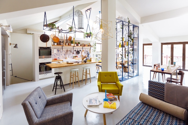 Studioul de 90m2 se află într-o zonă veche a Bucureștiului, pe Făinari, la numărul 5, și a fost amenajat de către arhitecta Eliza Yokina, co-fondatoare a biroului de arhitectură SYAA. Coloana vertebrală de la care a pornit amenajarea întregului spațiu este masa comunală prelungită cu insula de gătit.