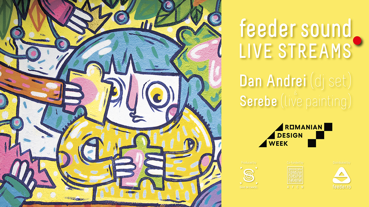 Urmărește feeder sound live cu Serebe și Dan Andrei, Miercuri 16 Septembrie, începând cu ora 18:00 (ora României, GMT+3), pe www.feeder.ro, www.facebook.com/feeder.ro și www.facebook.com/romaniandesignweek.