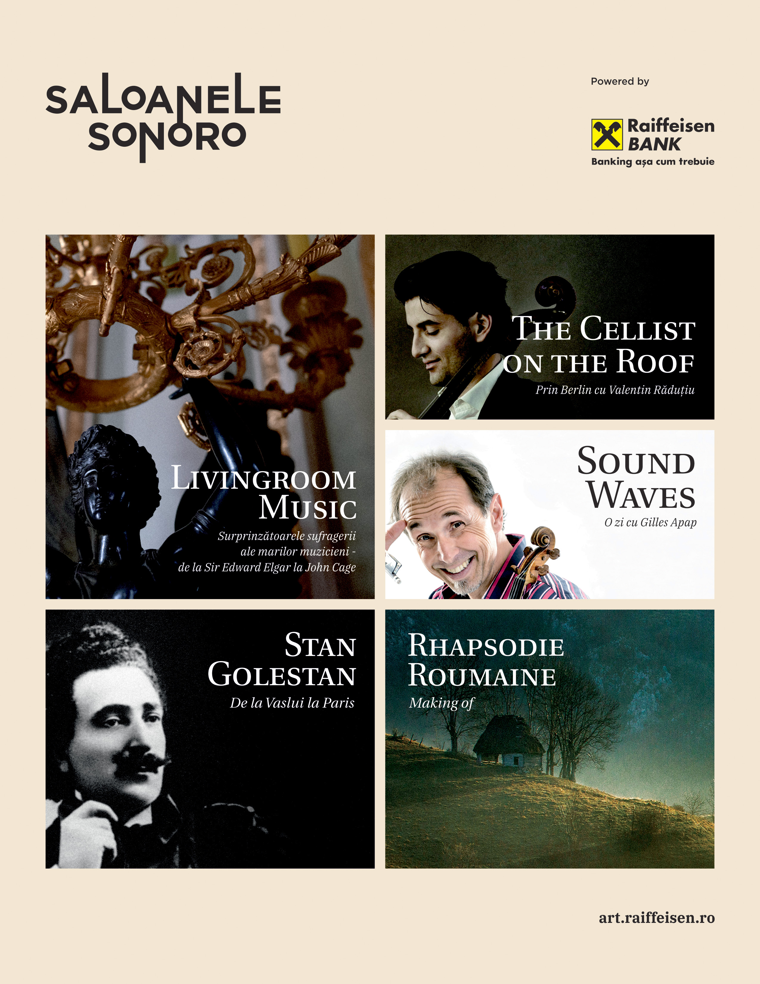 Cele cinci episoade din seria Saloanele SoNoRo vor putea fi urmărite exclusiv în secțiunea Muzică a platformei art.raiffeisen.ro după cum urmează: