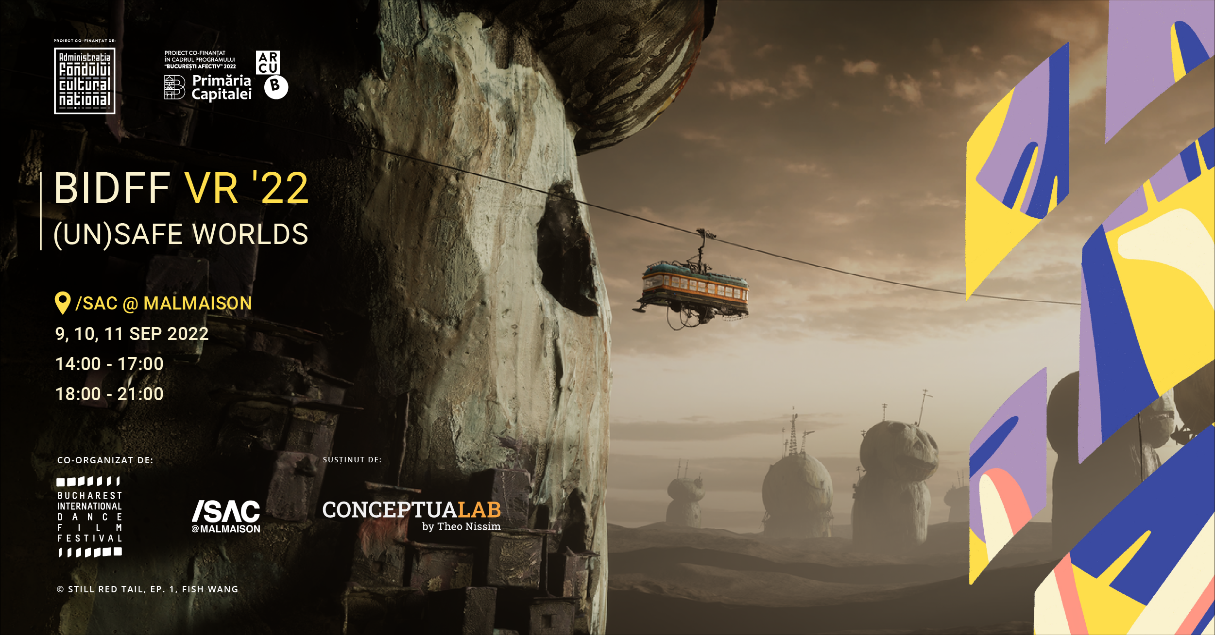 Co-organizată de BIDFF și /SAC @ MALMAISON, selecția BIDFF VR ’22 chestionează lumea sigură în care trăim și ne prezintă realitatea fragilă din zone instabile ale planetei. Expoziția conduce vizitatorii într-o călătorie introspectivă prin consecințele dezastrului nuclear de la Fukushima, apoi face o tranziție temporală prin transformările unui oraș din Indonezia și promite o incursiune prin realități paralele microscopice și emoțiile contradictorii ale unor povești de dragoste nerealizate. Mai mult, lucrările problematizează într-o manieră critică subiecte precum centrele de reeducare din Asia, culturile uitate de pe platoul Tibetului, rolul omului în raport cu tehnologia și atitudinea noastră vis-a-vis de comunicare și interacțiunea inter-umană.