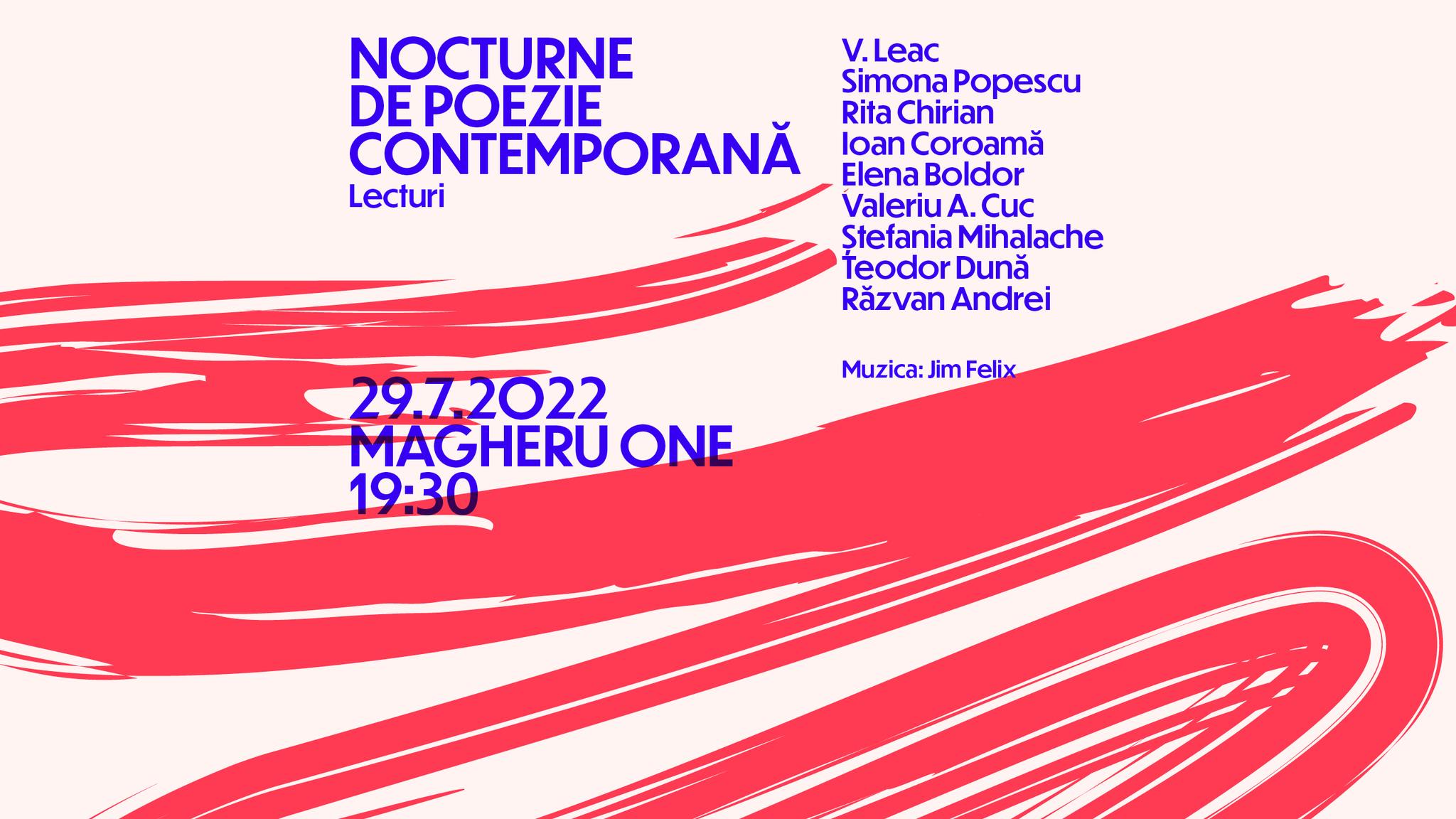 Vineri, 29 iulie, de la ora 19.30, pe terasa Magheu One, vor citi poetele și poeții Valeriu A. Cuc, Simona Popescu, Elena Boldor, Răzvan Andrei, Rita Chirian, Teodor Dună, Ioan Coroamă, Ștefania Mihalache, V. Leac.