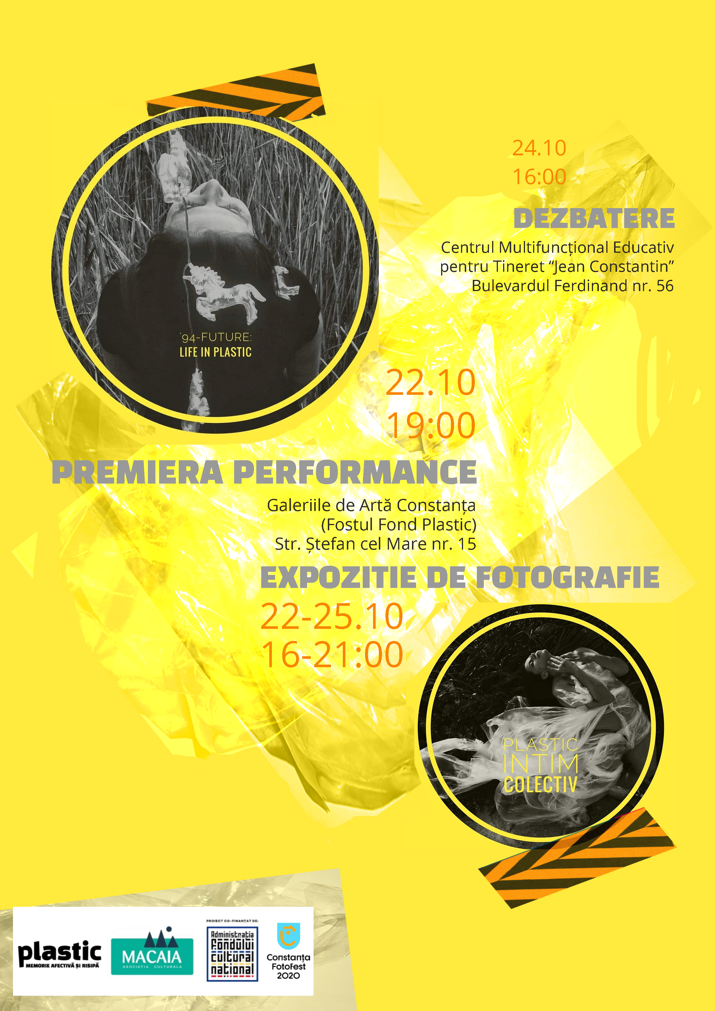 Cel mai important produs artistic al proiectului ”Plastic. Memorie Afectivă și Risipă”, performance-ul-manifest are premiera pe 22 octombrie în cadrul festivalului, iar pe parcursul celorlalte zile, echipa întâmpină publicul constănțean cu o expoziție de fotografie conceptuală și o instalație audio-video ce explorează rolul și impactul plasticului în memoria afectivă și în spațiul social.