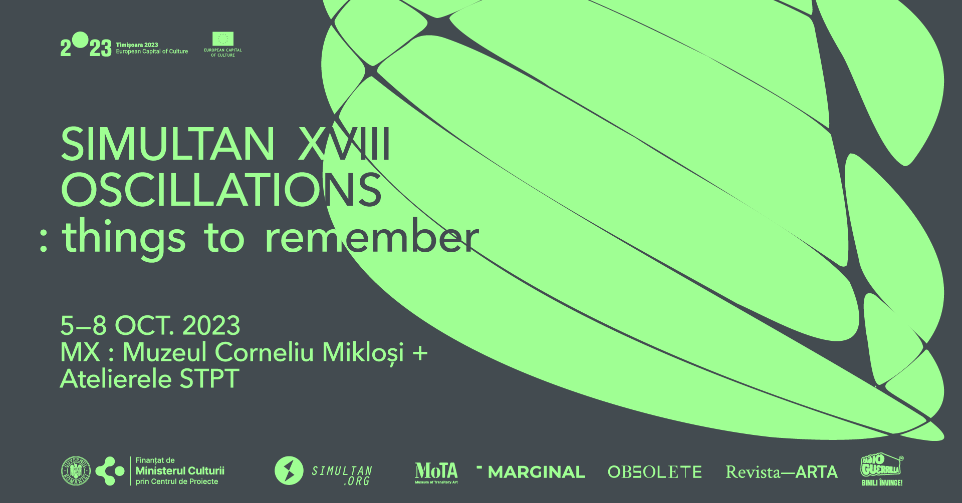 Festivalul SIMULTAN, dedicat artelor interdisciplinare, revine în Timișoara cu o nouă ediție în perioada 5-8 octombrie 2023, având ca temă centrală “OSCILAȚII: Lucruri de reținut”. Muzeul Corneliu Miklosi și fostele ateliere ale Societății de Transport Public Timișoara vor fi unite fizic și conceptual în cadrul aceluiași eveniment.
