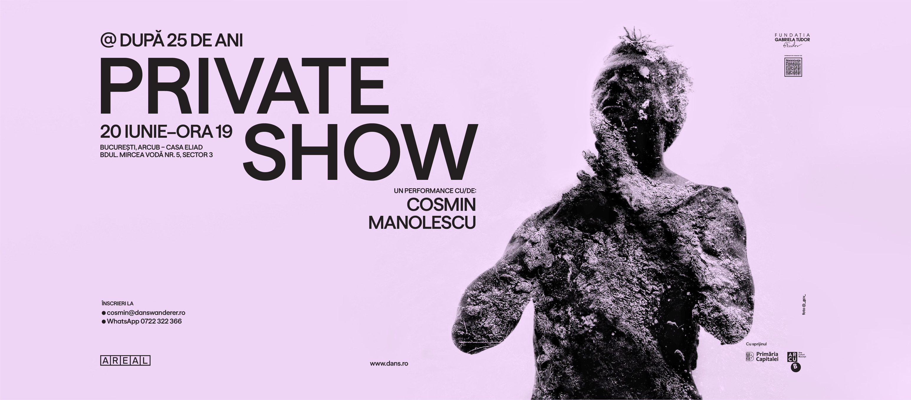 De asemenea, în data de 20 iunie, coregraful Cosmin Manolescu va prezenta la ARCUB - Casa Eliad performance-ul Private Show @după 25 ani, un performance-dialog despre memoria corpului, la care persoanele interesate își pot rezerva locul la adresa de email cosmin@danswanderer.ro sau WhatsApp 0722322366.