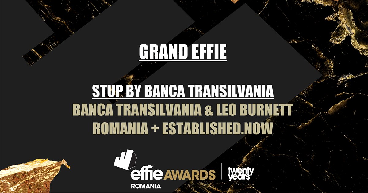 Grand Effie a fost acordat lucrarii "Stup by Banca Transilvania”, semnata de Leo Burnett + Established.now pentru Banca Transilvania.