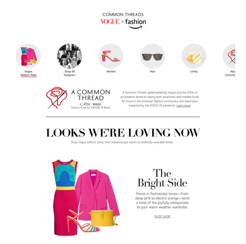 • Vogue și Amazon US fac un parteneriat prin care susțin micii designeri locali, printr-un magazine virtual pe amazon.com. Detalii aici: https://www.vogue.com/article/common-threads-vogue-cfda-amazon-fashion. În schimb, platforma Market Place Pulse vine cu o perspectivă critică, subliniind că sunt puține șanse ca acest landing page simplu să aducă mari venituri designerilor, dar, în schimb, îi aduce pe platforma Amazon, ceea ce încercau demult. Articolul complet aici: https://www.marketplacepulse.com/articles/amazon-is-not-going-to-rescue-fashion