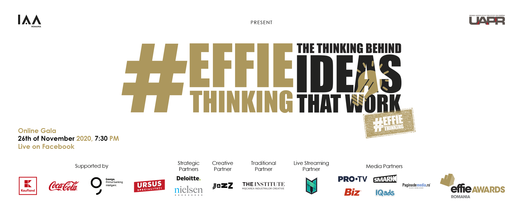 Romanian Effie Awards 2020 este un proiect organizat de IAA România şi UAPR, susținut de Kaufland, Philip Morris România, Coca-Cola, George și Ursus Specialități.