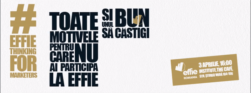 #effiethinking for Marketers, al treilea seminar al seriei Effie Talk, va avea loc miercuri, 3 aprilie, începând cu ora 16.00, la Institute, the Café (Strada Știrbei Vodă 104-106).