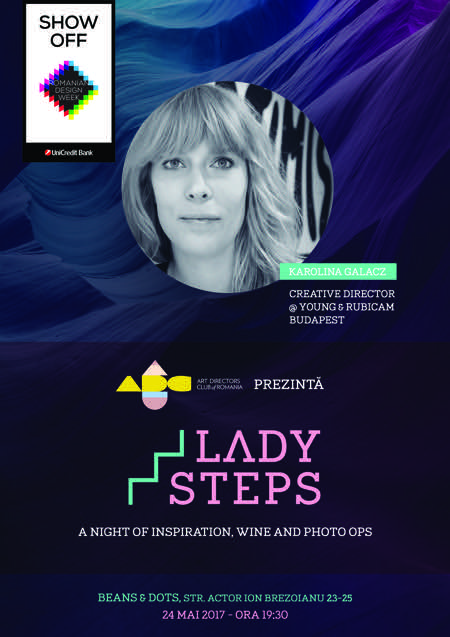 Lady Steps este un proiect ADC România  în care femei de top din industrii creative vin să inspire prin exemplu personal și să-și ȋmpărtășească povestea lor de succes. Invitata ediției cu numărul patru este Karolina Galácz, Creative Director Young & Rubicam Budapesta.