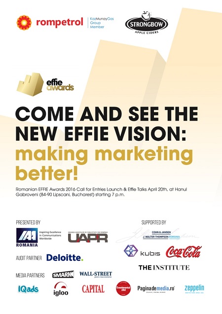 Ediția 2016 a Effie aduce o serie de schimbări importante de format, așa că lansarea trebuia să fie pe măsură. Găzduit de Hanul Gabroveni, evenimentul aduce în același spațiu cei mai eficienți oameni de comunicare din industria locală pentru a le prezenta modificările și noutățile festivalului. Prezentarea va avea loc pe 20 aprilie începând cu ora 19:00.