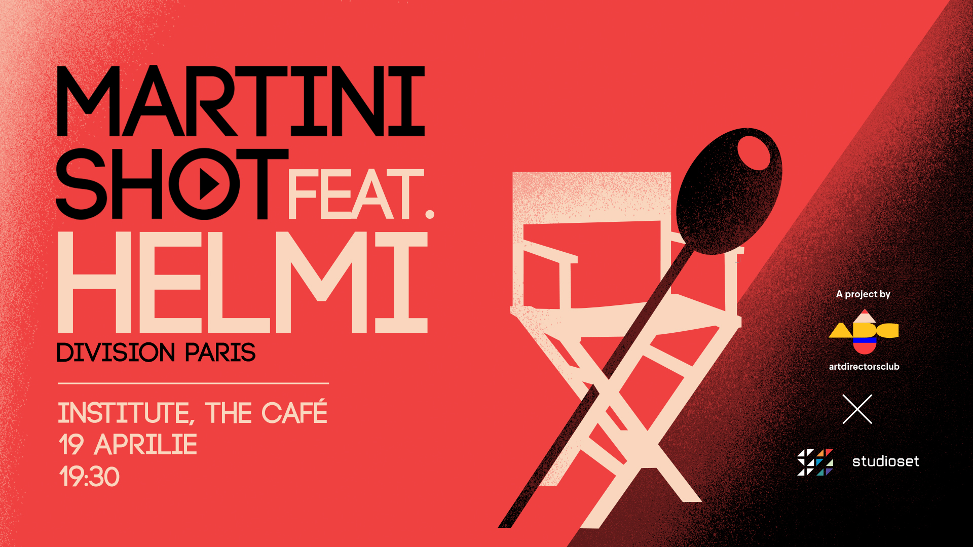Primul eveniment al seriei The Martini Shot este realizat în parteneriat cu Studioset, are loc vineri, 19 aprilie, începând cu ora 19.30, la Institute The Café și îl are în prim-plan pe regizorul Helmi de la Division Paris.