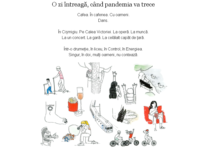 Poezia „O zi întreagă, când pandemia va trece”, realizată de DoR, care ne-a încurajat să visăm la ce vom face când ne vom putea întoarce la viața de dinainte de pandemie, câștigă Lucrarea Lunii & Locul 1 în categoria Digital. După call-ul lansat pe Instagram la care a răspuns publicul DoR, poezia a fost trimisă în Jurnal de Pandemie - un newsletter zilnic al redacției cu știri și resurse despre viața în izolare.