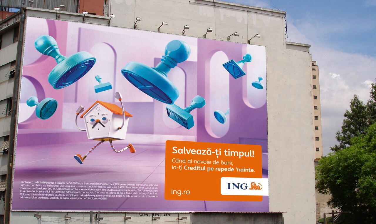 Cea mai nouă campanie a celor de la ING – Salvează-ți timpul! a reușit să strângă cel mai mare număr de puncte și să devină astfel Lucrarea Lunii septembrie în TOP 3 ADC. „Salveazǎ-ţi timpul!” apelează la o execuție care să prezinte literalmente sensul expresiei. Ideea creativă aparține echipei formate din Andreea Moise (Art Director) și Laura Dragomir (Copywriter) din partea Headvertising.
