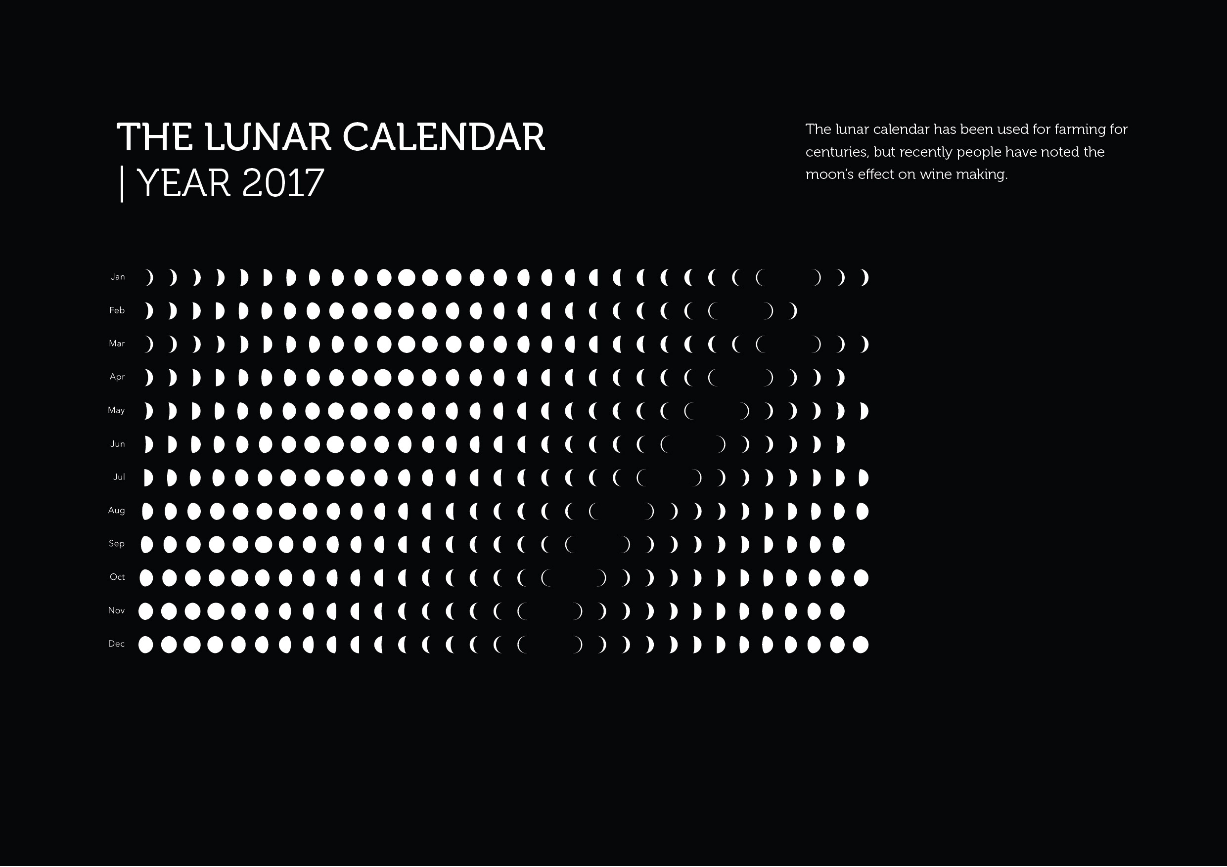 The moon represents a very important element in the biodynamic wine making. And the moon calendar is one of the most ancient way of predicting the right time of harvesting and vine maintenance. Now, as a symbol of gratitude, we celebrate this by making de moon phases (for one year long) the identity of the biodynamic labels of Domeniu Bogdan.