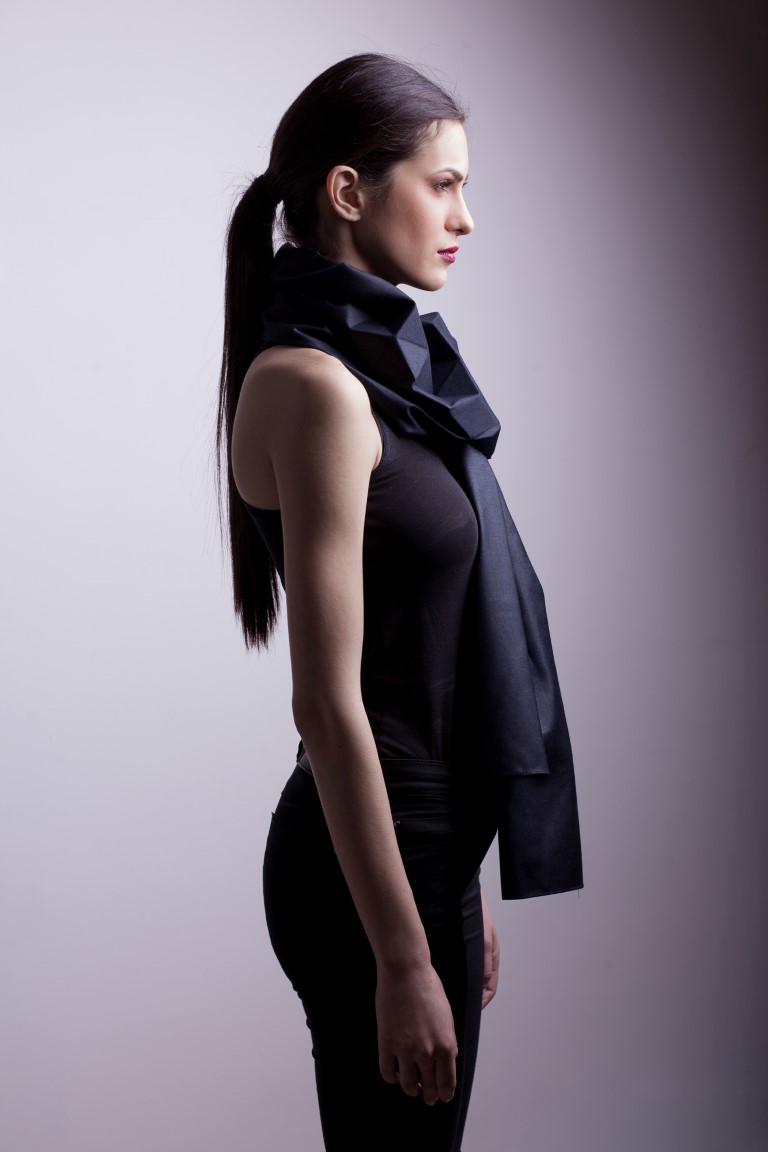 Details have always been a consistency of Cristian Samfira’s conceptual collections, ranging from petals, flowers, drapes to hand painted elements. The ready to wear AW 2014-2015 collection showcase an overall minimalist design that allow architectural details, like laser cut forms, paramterical shapes and oversize flowers, to create accessory like volumes and wearable proportions.