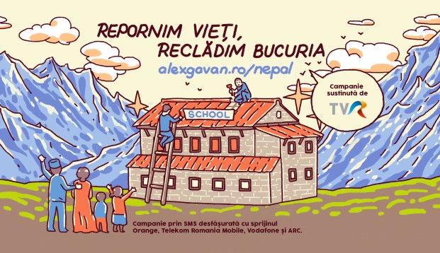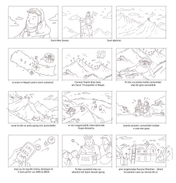 Joy for Nepal was a donation campaign initiated by Romanian mountain climber Alex Gavan and Oma Vision as a proactive reaction to the 2015 earthquake to rebuild schools that were destroyed in Nepal. An animated video was created to call for donations for television and online. The main challenge was to find a good effective style, which had to be expressive, but also economical. The target of the campaign was to collect 100,000 euros in donation fund, and this was achieved at the end of the campaign. Alex Gavan is currently in Nepal, documenting the reconstruction of the destroyed schools that used the money collected through this campaign.