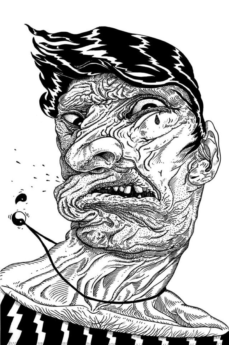 The subjects of his works are drawn from every day life and he usually portrays them in a very direct and sometimes even brutal manner. Occasionally he escapes the exhausting reality and dive into the absurd world of the imaginary. He works when he feels it is imperative to do a particular piece/drawing or when he wants to experiment with a new technique or subject. He chose to be a graphic artist, but, as many other artists, he is passionate about other mediums, so every now and then he puts a new roll of film into his camera and take to the streets, or he puts some canvas on the easel and gets lost in the act painting.