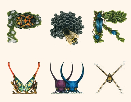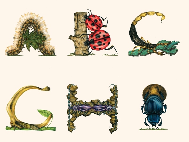 The “Arthropod Alphabet” is a series of 26 illustrations in which Paula Duță recomposed the alphabet letters using insects and a couple of other arthropods or arachnids.