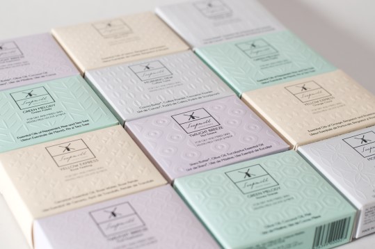 Soapmill is a high-end natural cosmetics brand, handcrafted in the countryside of Transilvania, Romania. The packaging design reflects the brand values – respect for beauty and nature and discreet elegance. The soap and cream boxes come in pastel colors and white and they are covered with embossed textures inspired by natural patterns and wild flowers mixed with refined traditional patterns. Each pack’s look changes subtle with the way light lays on the embossed texture, thus giving the product a feel of intimate playfulness.