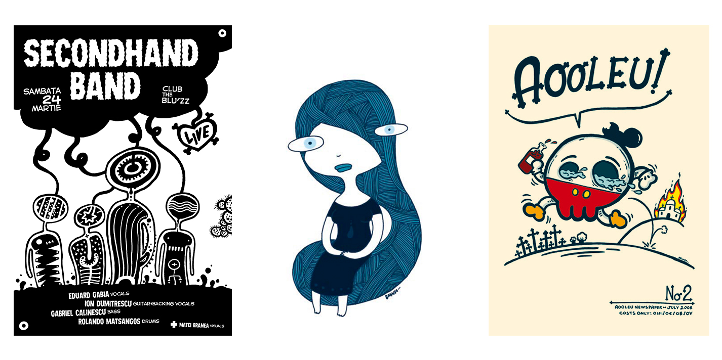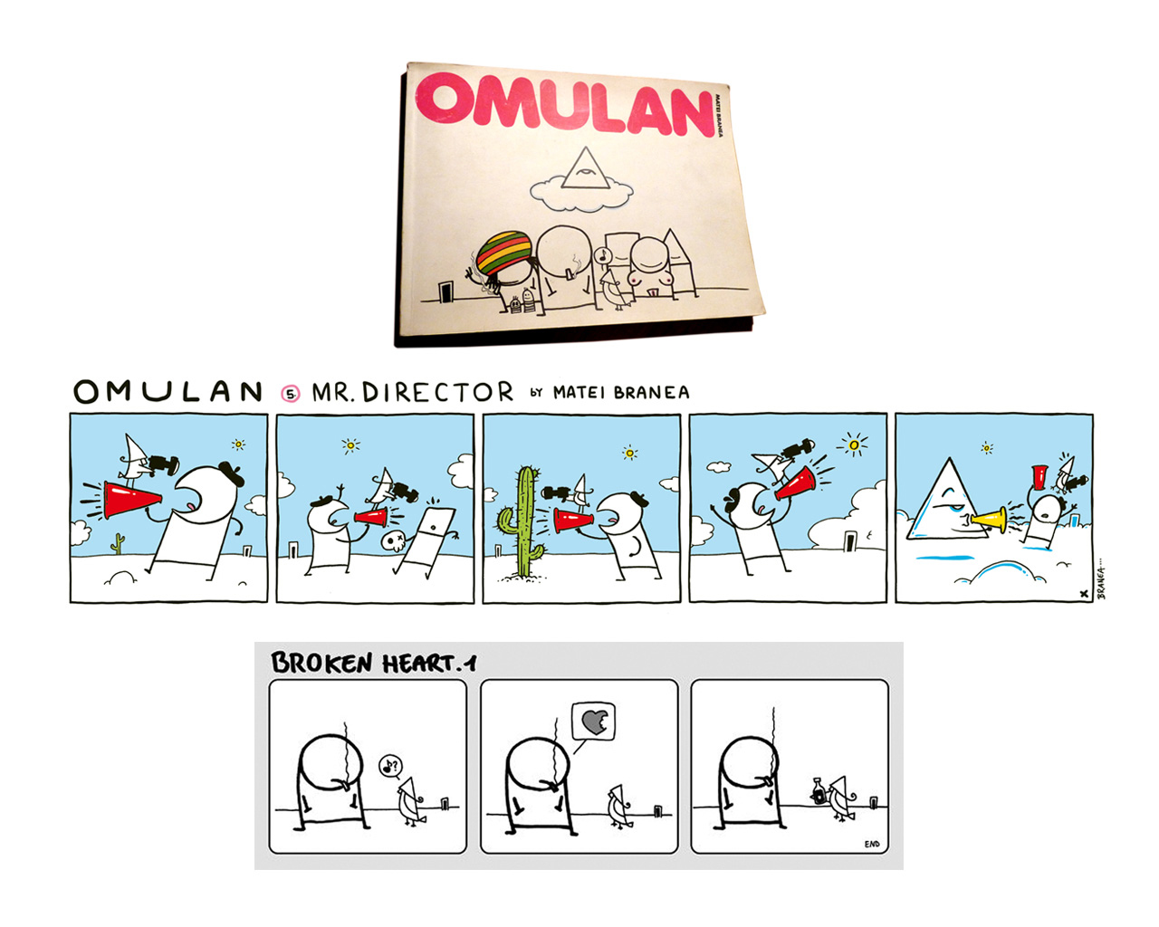 Born and based in Bucharest, Matei Branea is a comics and 2D animation artist, the creator of OMULAN, a minimalist character which became a local hit in 2002 with the publication of its dedicated Hardcomics issue. His most well known works are his comics and animations starring Omulan, the animations for the Marcă Înregistrată TV show, the colab with Planeta Moldova comic duo for a two seassons tv show and the Invidia music video, and his signature posters and animation promos for NexT International Film Festival in Bucharest. His comics and illustrations were published and exhibited nationally and internationally from Tokyo to New York, trough Berlin, London, Paris and of course, Bucharest. Branea currently teaches animation at the Bucharest Film School (UNATC) and has finished a fresh and spicy 15 min animation, “Omulan!”, a cosmic story about the meaning of life.