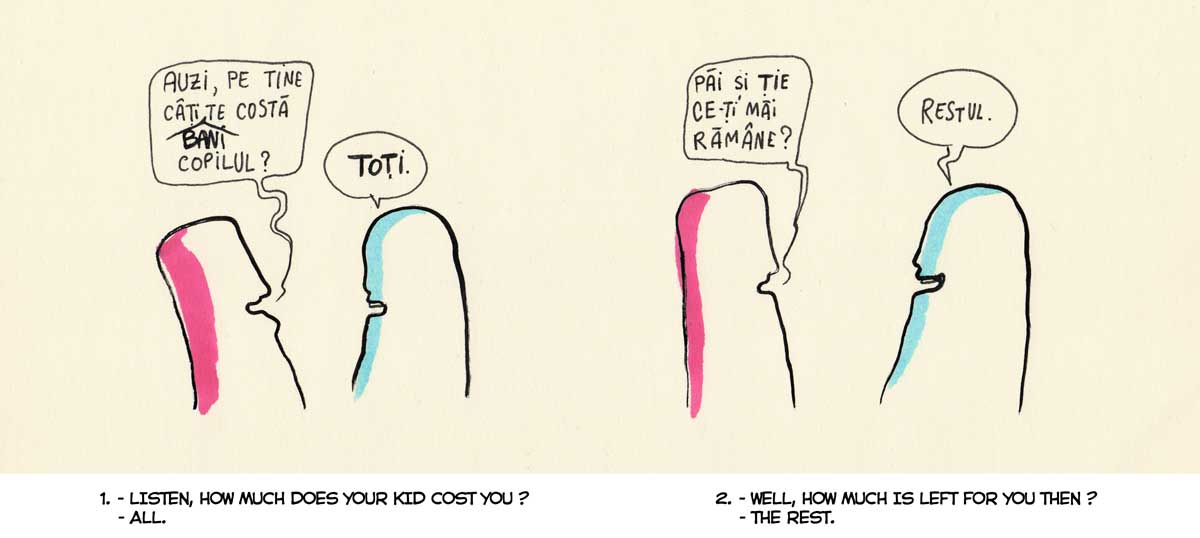 The detailed backgrounds created by Noper describe a picturesque world in which Matei Branea’s characters are perfectly integrated. Each habitat is carefully built so that it reflects and enhances the personality of the characters. “Spaceship Birdy” grants you access to a very detailed and well engineered set of the film, done by one of the most important illustrators active in Bucharest in the last decade.