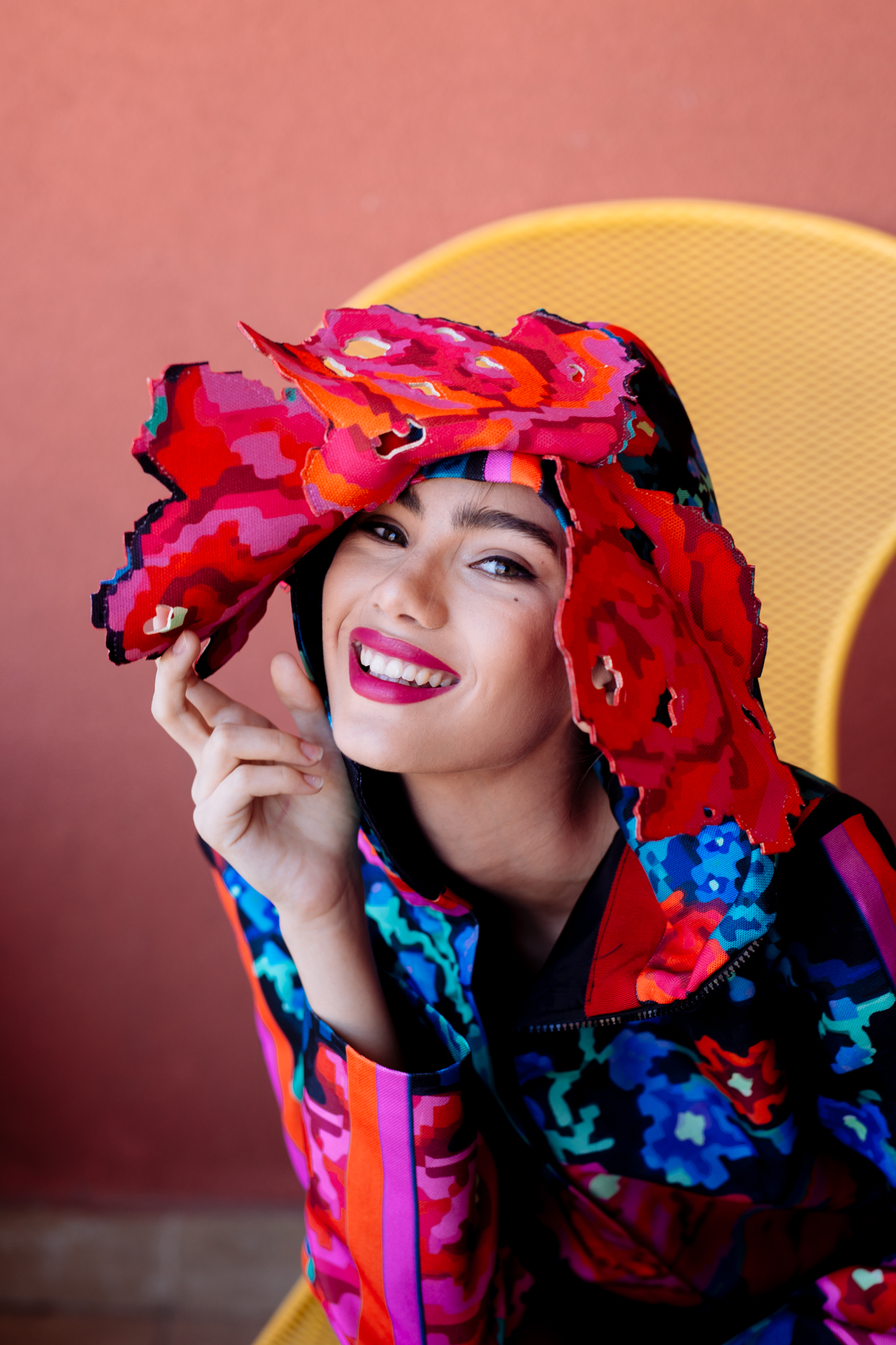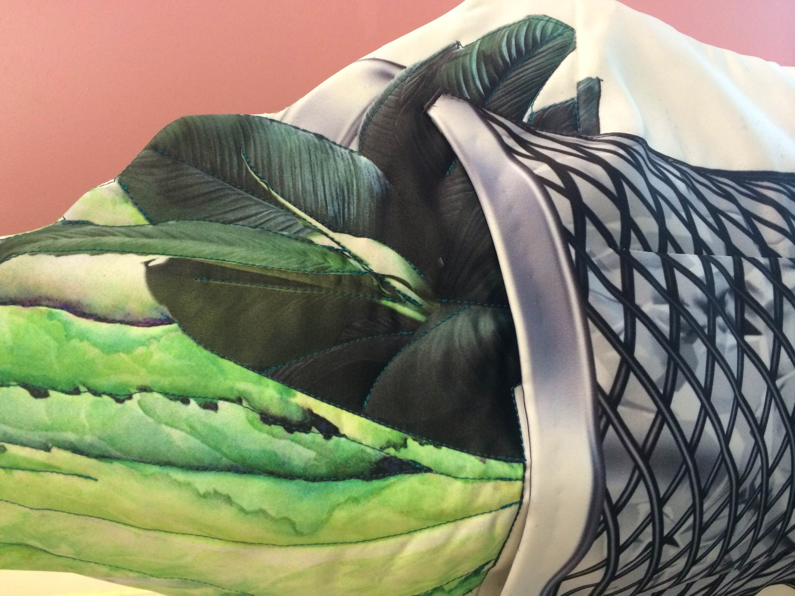 Her original style comes from the fact that she designs all her visuals and patterns, transforming pure white fabrics into strong unique conceptual pieces through the means of digital printing.