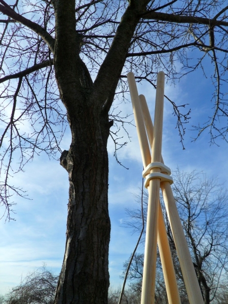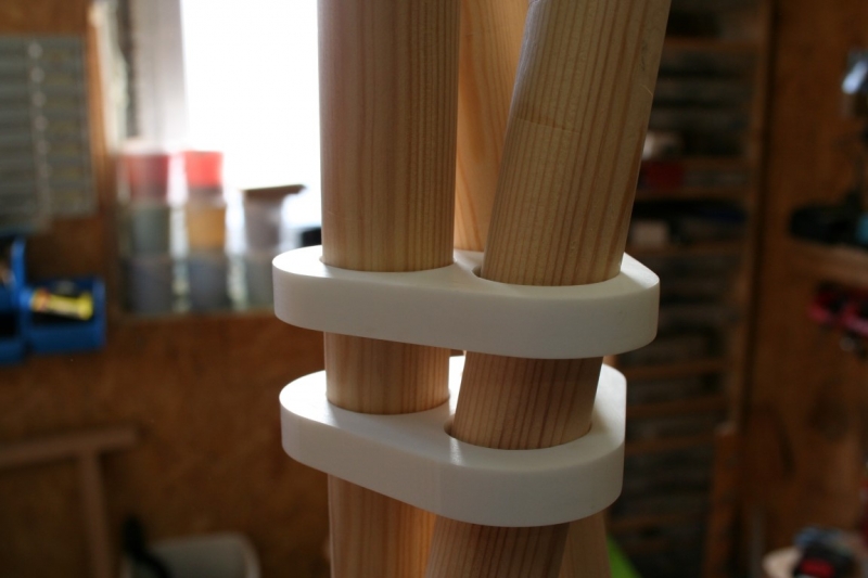 KODAMA coat rack is made of 3 sticks of wood that are connected with joints. This shape is created considering the physical characteristic of an object working with balanced weights. Any kind of minimum 3 wood sticks can be connected with 2 continuous ropes to create a similar object (Cabinet suggests straight tree branches and hemp rope). The object is created in collaboration with wood republic and corian joint is produced by ekero concept.