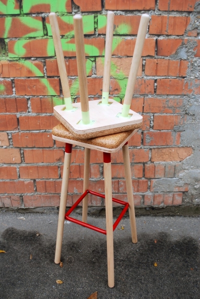 Inspired and designed for use in urban spaces, Marco is a set of furniture for cafés and bars. Made of cork, beech and beech plywood, Marco is 100% recyclable and eco-friendly. The seat’s top shape was inspired by Apple products, with the name Marco derived from the Portuguese word for apple – “março”. The word play was chosen in Portuguese as Portugal holds approx. 50% of the world’s cork production.