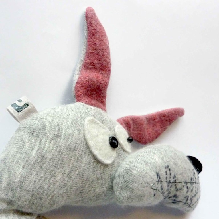 Lutopia has an ever growing population and each lutopian is unique and personalized. As an exception, limited softie-series are produced for special occasions, e.g. charitable auctions or the recent local ecologist rallies, when they were offered as gifts for the participating children. All Lutopians are designed and fabricated by Klara Veer in Cluj (RO), using upcycled textiles with natural fabrics (most of the times she uses donated woolen pullovers). Their conception involves a special collaborative process between the maker, a “godparent” who sends in the drawing and the creative doodler who has no idea about the surprise. Initially, Lutopia started as a playful exchange between an aunt and her nephew. The story began in 2009, when Klara decided to create a gift for the two year old Tom, using her favorite cashmere pullover which shrank in the washing machine. She tailored a softie inspired by the drawing of a Bird that he made for her.
