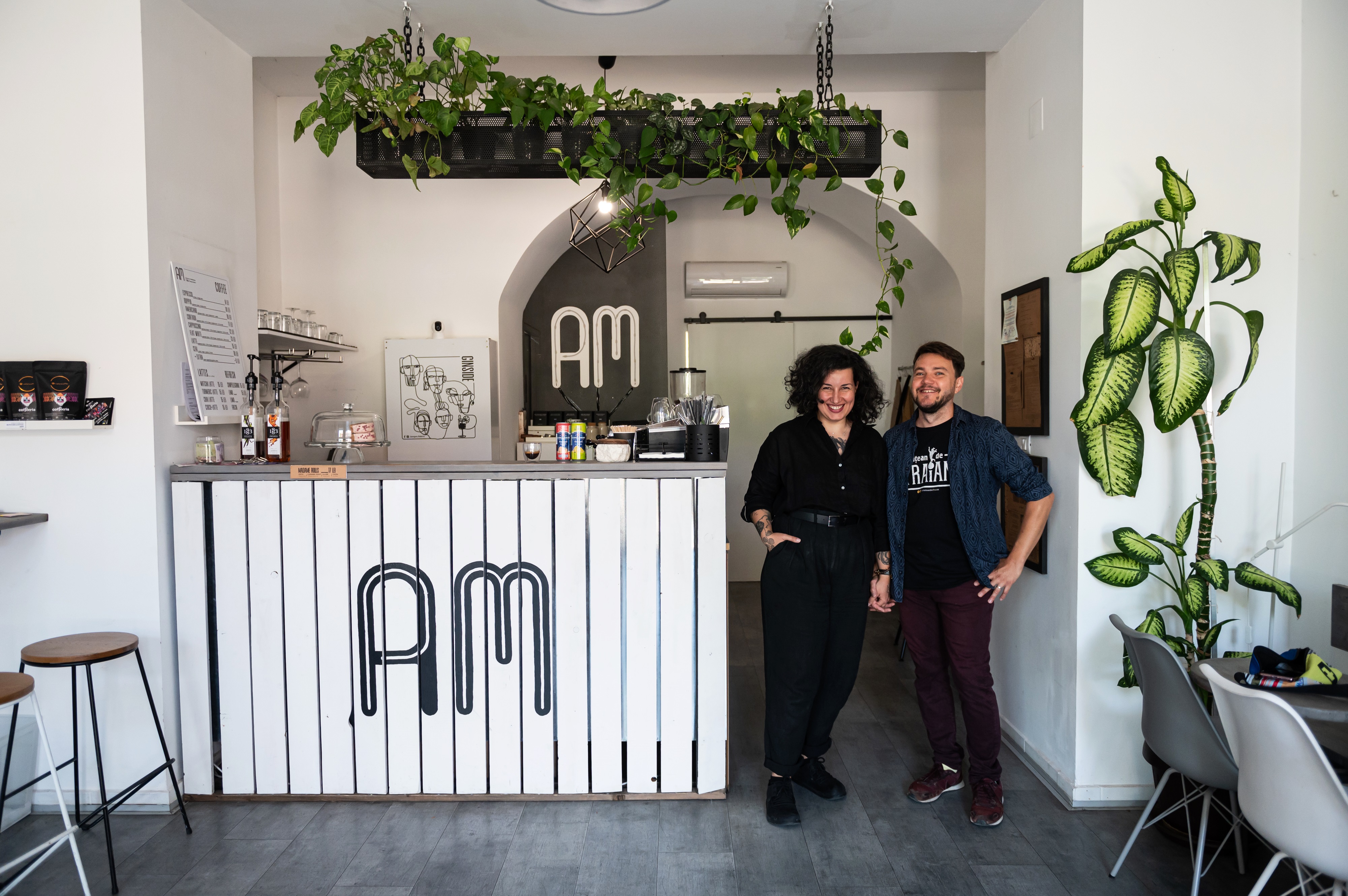 Laura și Sergiu în cafeneaua lor, AMPM.fabric, din Piața Traian.